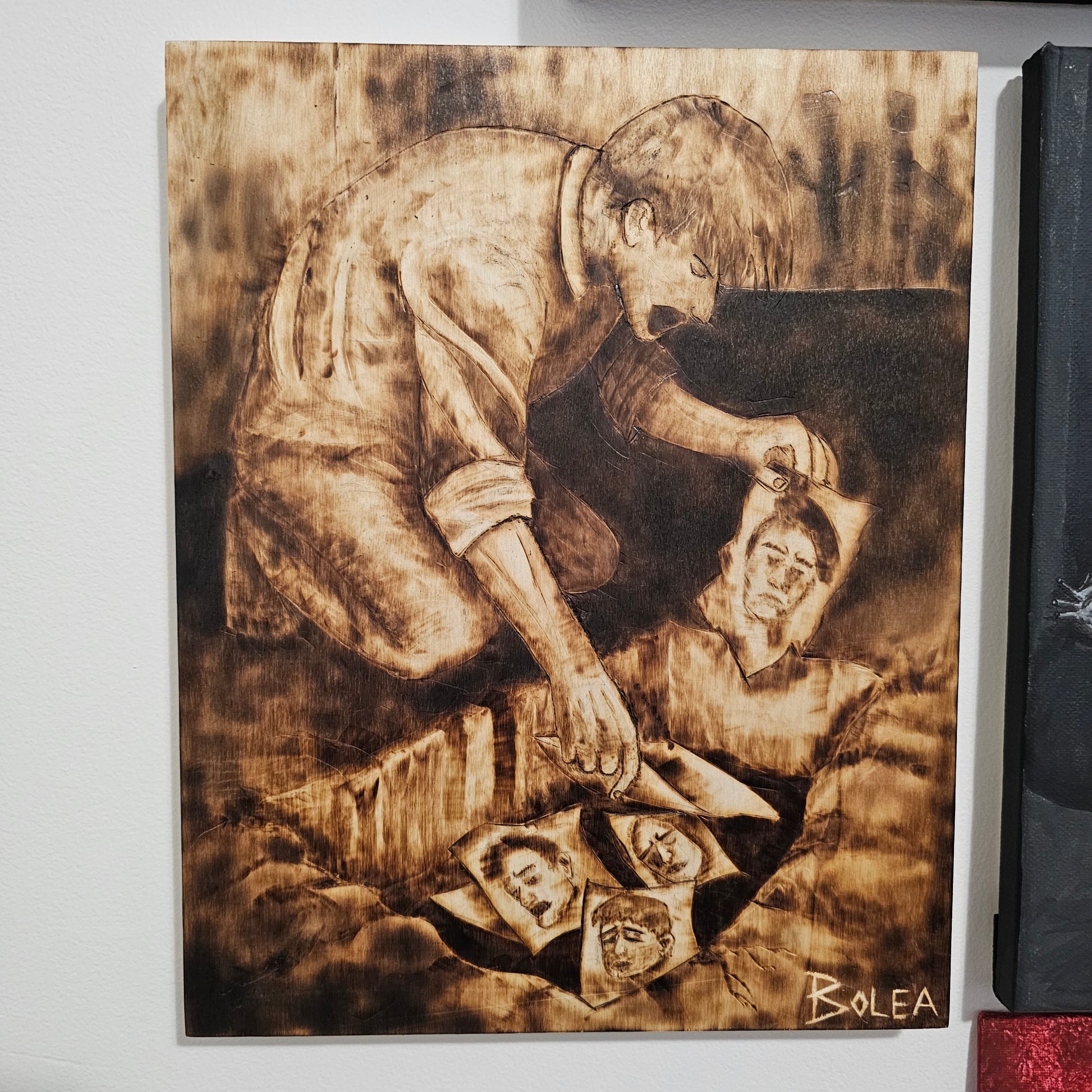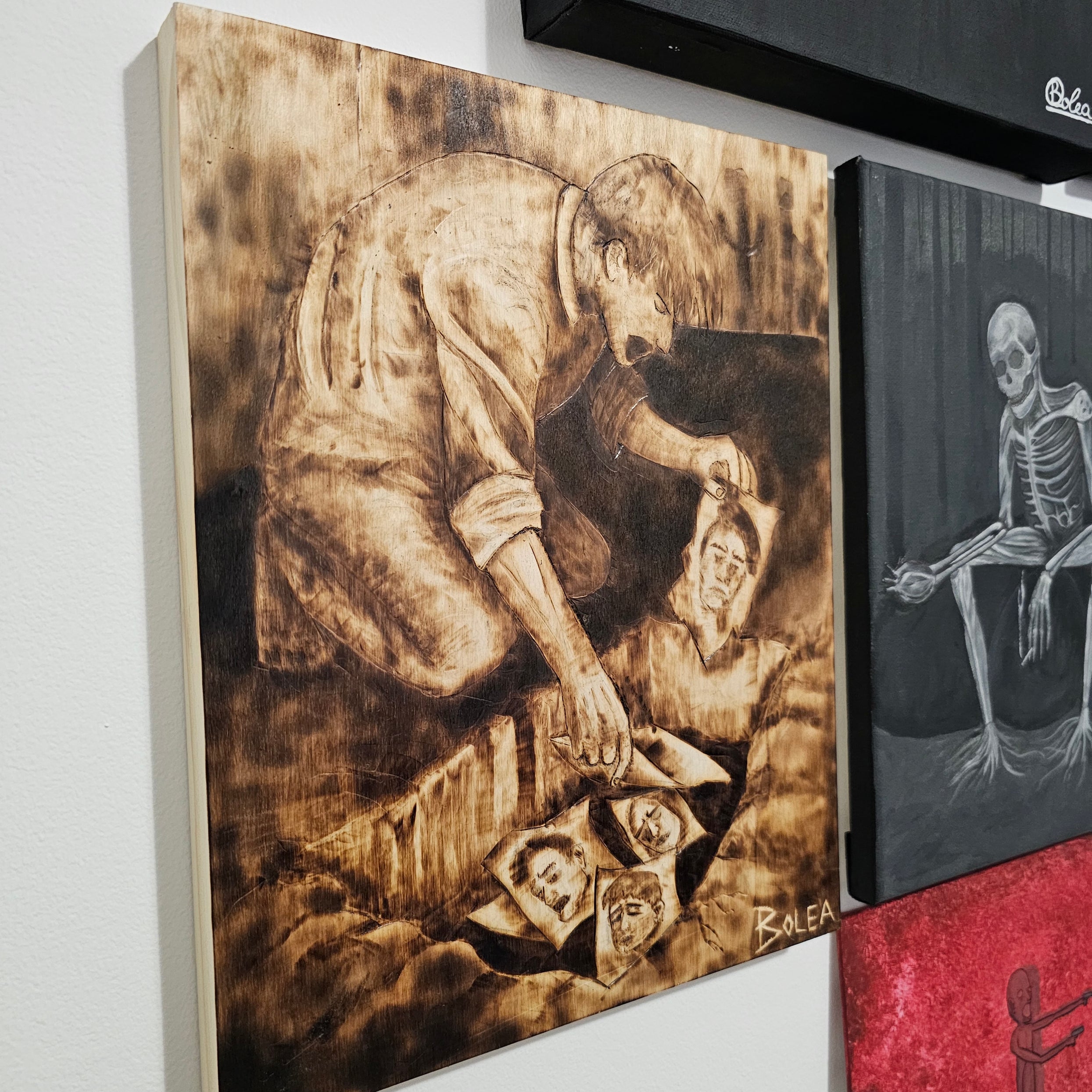 L'uomo che seppellisce le personalità è un tizio che vuole dimenticare i lati del suo carattere che odia. Vuole lasciarli sotto terra a marcire perché stanco di quanto si sente in colpa. Quei sentimenti sono sempre presenti, il senso di colpa non andrà mai via, ma la consapevolezza di cosa diventerà lo aiuta a scavare. Urla ancora, ma starà bene.